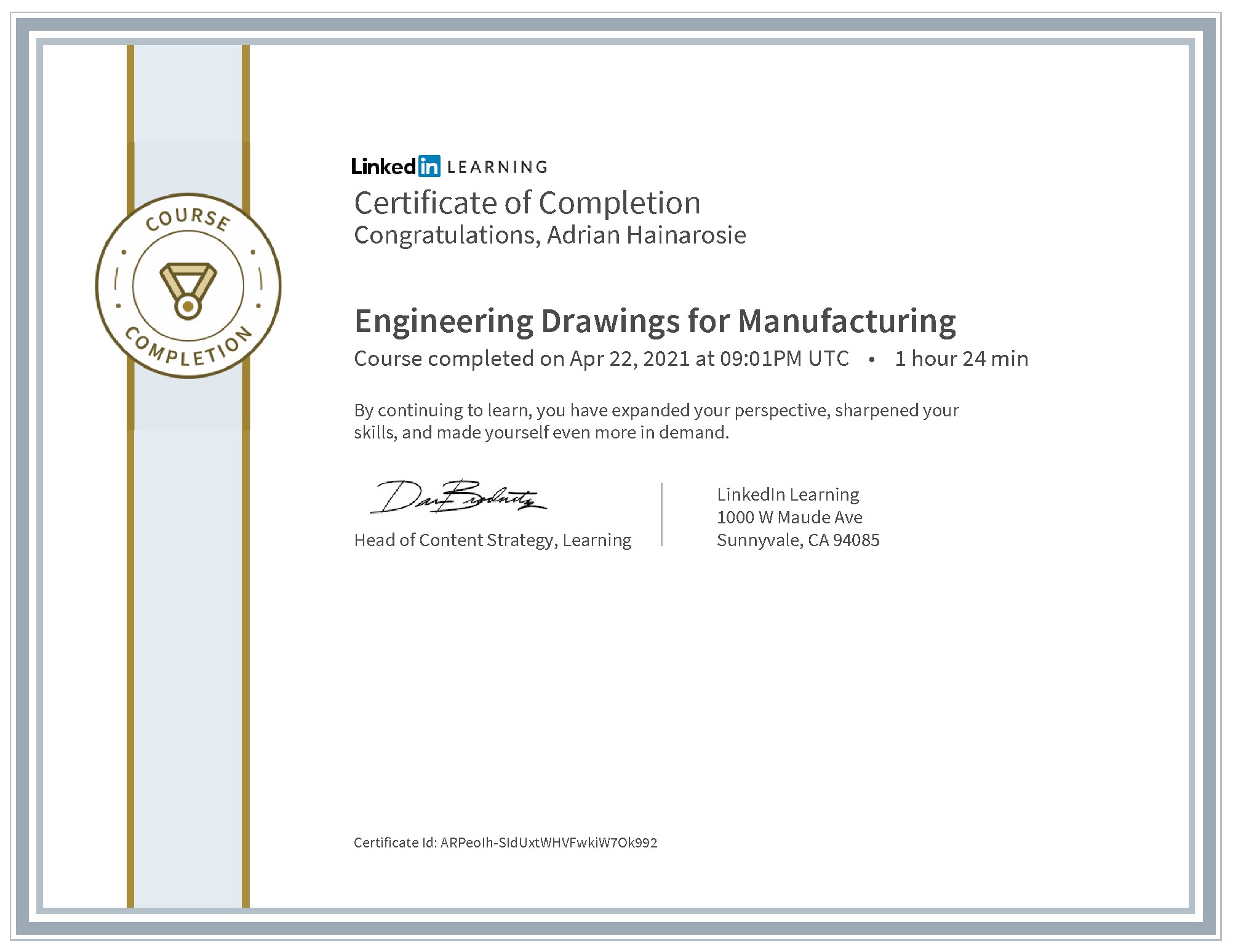 Adrian Hainarosie C.A.D. Mechanical Designer & C.A.M. Programming C.N.C. Manufacturing.